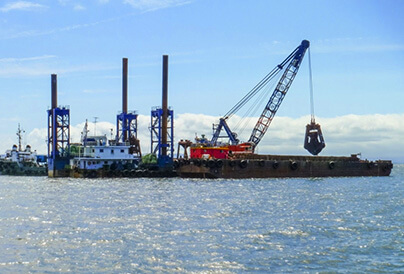 航道疏浚設計包括挖槽定線,挖槽斷面尺寸的確定,挖泥船的選擇和棄土處理方法等。